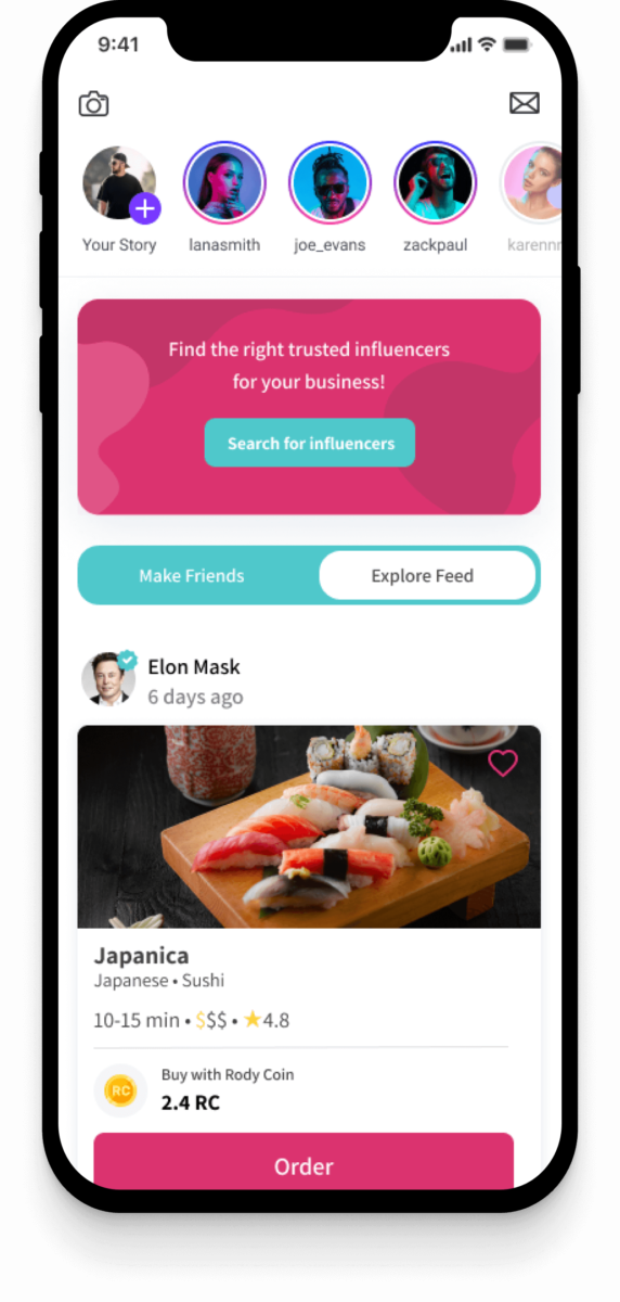 Rody is aiming to disturb the online shopping and food industry by combining social media, influencer marketing, and digital coins in one platform.